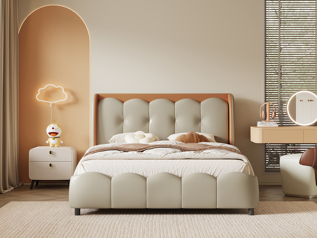 臥室家具真皮床都會有些許味道,沒味道的肯定不是真皮床,但也不是味道越重皮質越好。國產皮尤其是國產二層皮,床的臭味很重,而且持久、刺鼻,嚴重的會令人無法入睡,引起呼吸道疾病等。采用進口牛皮做的皮床味道是輕的,不刺鼻,氣味在打開包裝后,三、四天時間就會慢慢減弱消退。