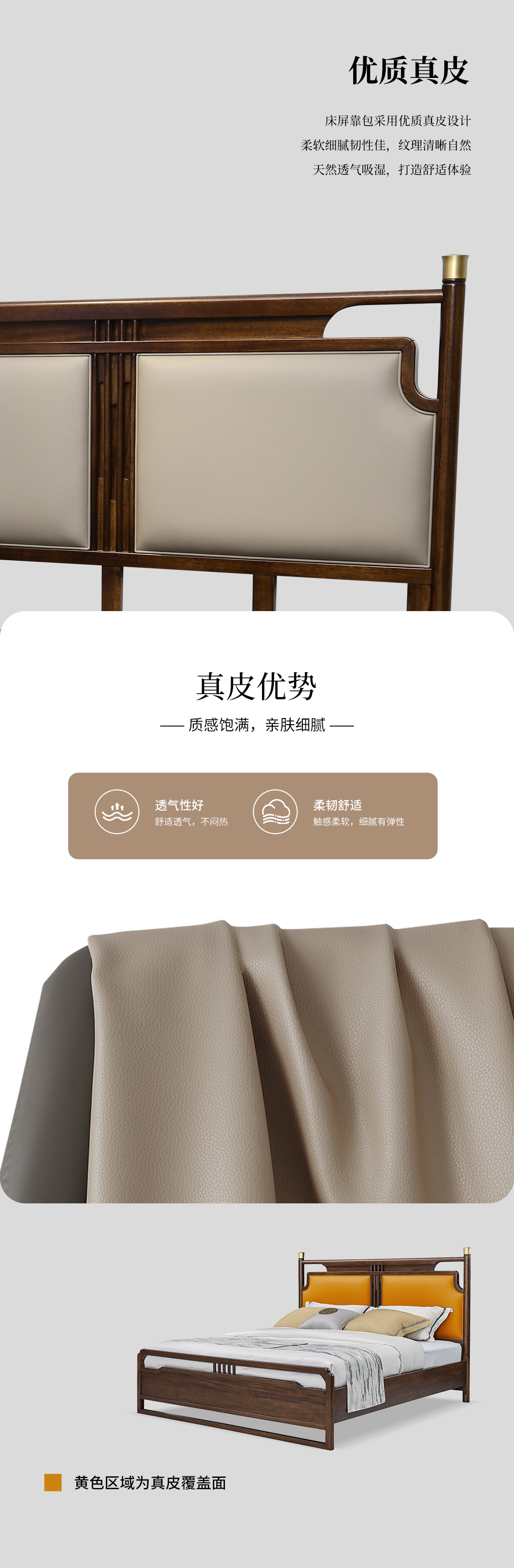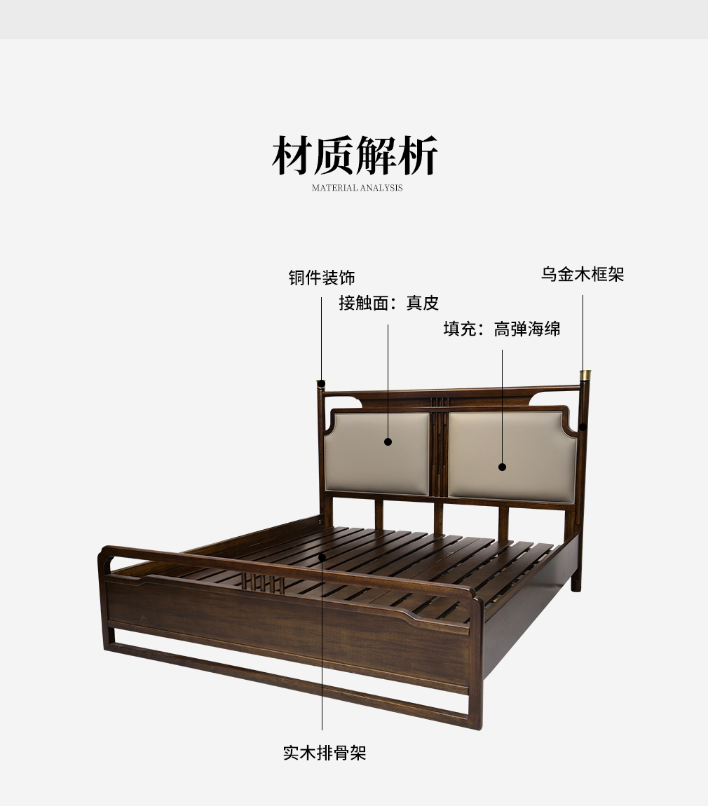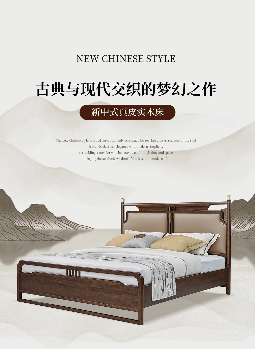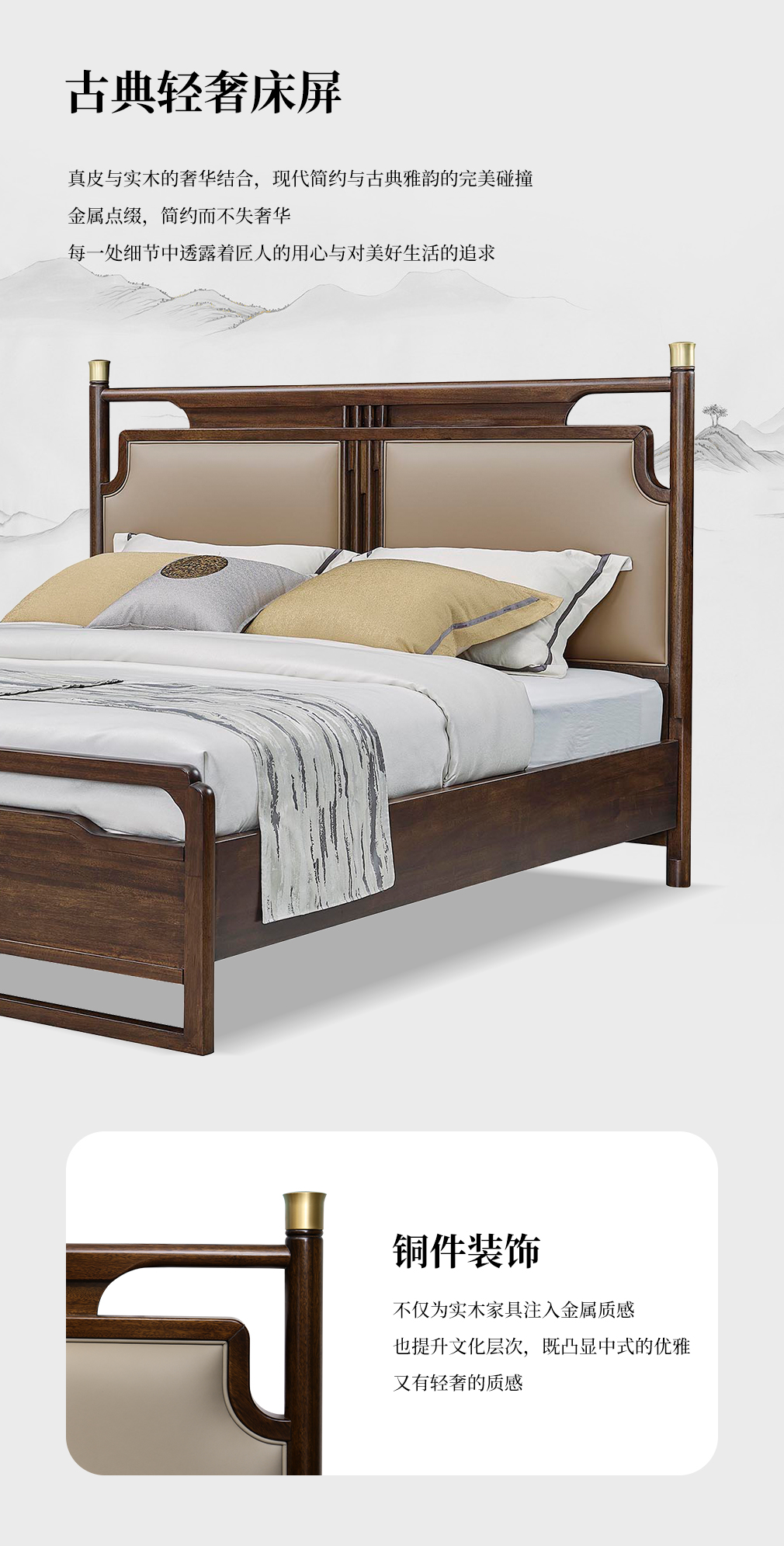 云庭新中式CH-P2514T真皮實木床
